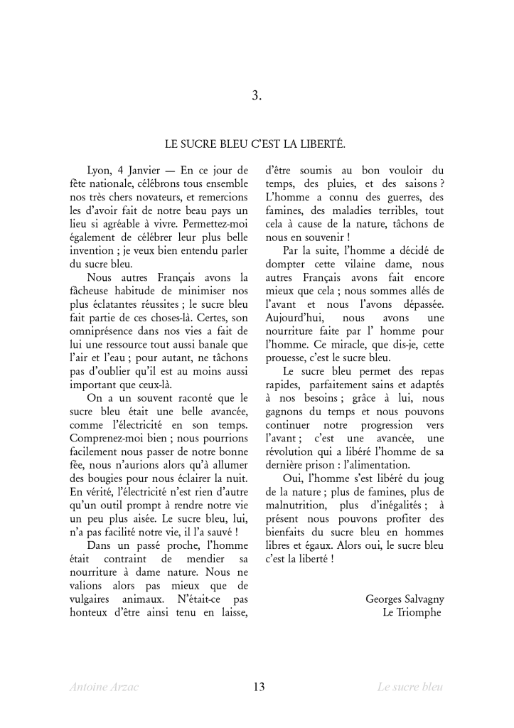 – l’organisation d’une société qui ne vit que par et pour l’aliment unique : le sucre bleu.